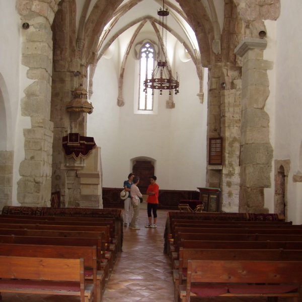 The church was built in Romanic style and suffered many changes during the time. In the 15th century the community wanted to transform the basilica in gothic style, but they only erected the 32 meters tower, the highest in the area at that time. The beauty of the church exterior is represented by the pantries built on the sides and their mobile stairs. The fortification built in the 15th century consists in thick 12 meters high walls and 7 defensive towers.