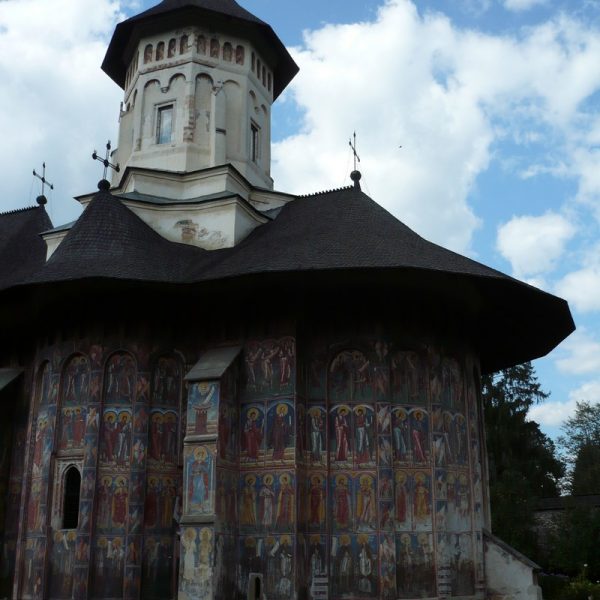 According to the architectural tradition set by Stephen the Great, the church has a three-cusped plan, as well as an open porch. The frescoes were painted by Toma of Suceava, in 1537. Among the most interesting one is the Siege of Constantinople on the southern facade, related with the Romanians’ fights against the Turkish invasions. The painting combines scenes of the siege of Constantinople from 1453 with others referring to a previous such attempt made by the Persians, in 626.